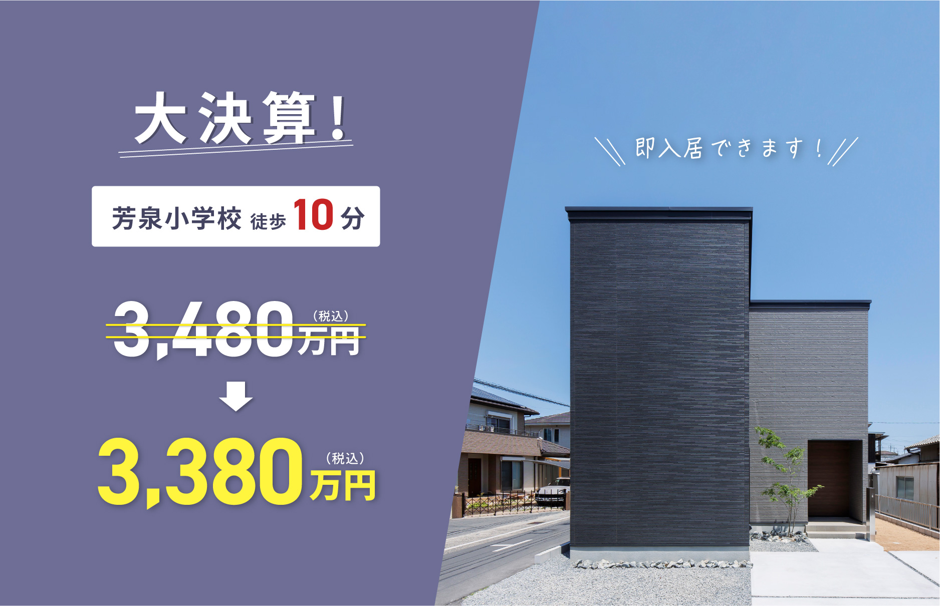 【大決算!】芳泉小学校 徒歩10分のモデルハウスが 3,480万円▶︎︎3,380万円